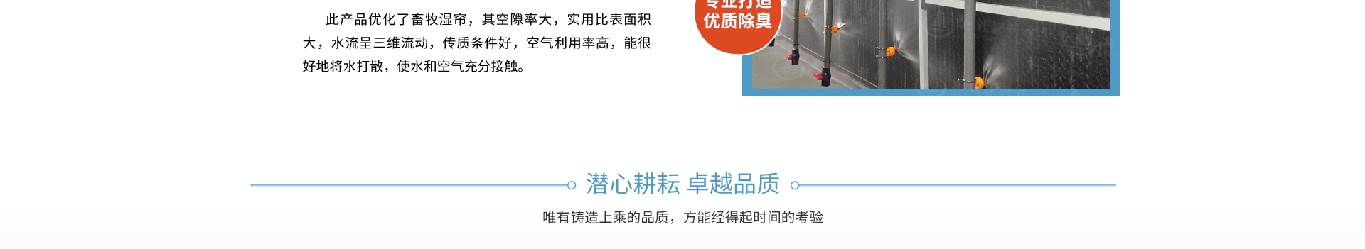 塑料濕簾也叫除臭濕簾,豬舍產(chǎn)生的豬尿、豬糞味會有很多有害氣體,直接排放不僅會污染環(huán)境,也會有防疫風(fēng)險(xiǎn)。除臭濕簾安裝在出風(fēng)口,