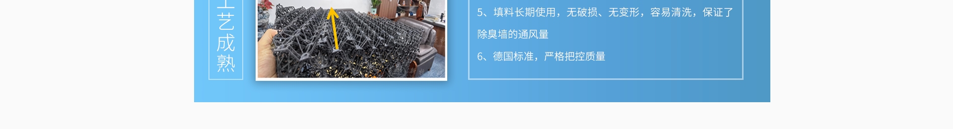 上面經(jīng)過噴淋,像氨氣這些水溶性很強(qiáng)的有害氣體就會溶于水中從而避免被直接排到外界。同時塑料濕簾的特殊材質(zhì)還能有效過濾各種雜質(zhì)。